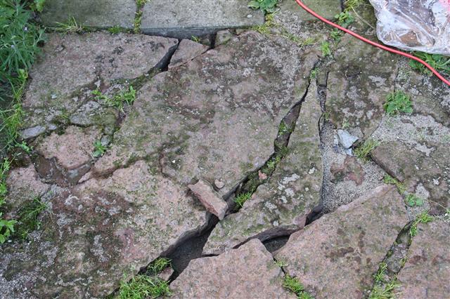 Også brudfliserne i haven havde taget skade (undermineret af vandet)..